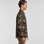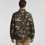 Collared jacket, two side pockets, snap dome to close, drawcord at hem, elastic cuffs
